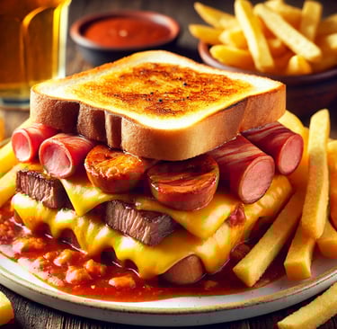 The franchesinha, which translates to 'little Frenchie,' is a hearty sandwich that hails from the vibrant city of Porto, Portugal. Its origins can be traced back to the 1960s, inspired by the French croque-monsieur. However, the franchesinha has evolved from a simple sandwich into a legendary Portuguese dish, reflecting the country’s rich culinary heritage. Local lore suggests that the sandwich was created by a returning émigré from France, who wanted to bring a taste of his travels back home. What started as a modest preparation soon became a staple in Portuguese households and eateries, delighting locals and visitors alike.